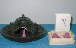 この商品は胴に浜松図で下皿の渕にあられ模様が鋳込まれた小さくてかわいらしい香炉です。胴と蓋が一緒に鋳込まれていますのでお手入れがとても簡単にできます。貴女のセンスで色々な香りをお楽しみ下さい。